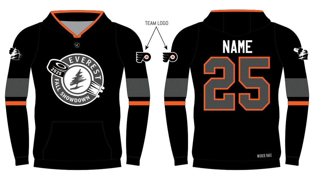 Limited Edition Showdown Hoodies - Only available through registration. The colored outlines will be customized to the team the athlete is placed on, with their name and number. $65/ea and available in sizes from Youth Small - Adult 3X.